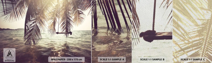 Fotótapéta Minta Premium Sand - Tetszés szerint hintázhat a felhők között - Tájkép, Kókuszpálma, Tenger - 100x30 cm