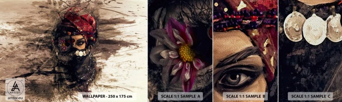 Fotótapéta Minta Premium Sand - Legalább riasztó - Absztrakció, Női Arc, Keleti szimbólumok - 100x30 cm