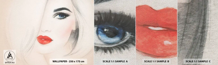 Fotótapéta Minta Premium Sand - Hipnotizál és kábít - Egy nő portréja, Női Arc, vörös ajkak - 100x30 cm