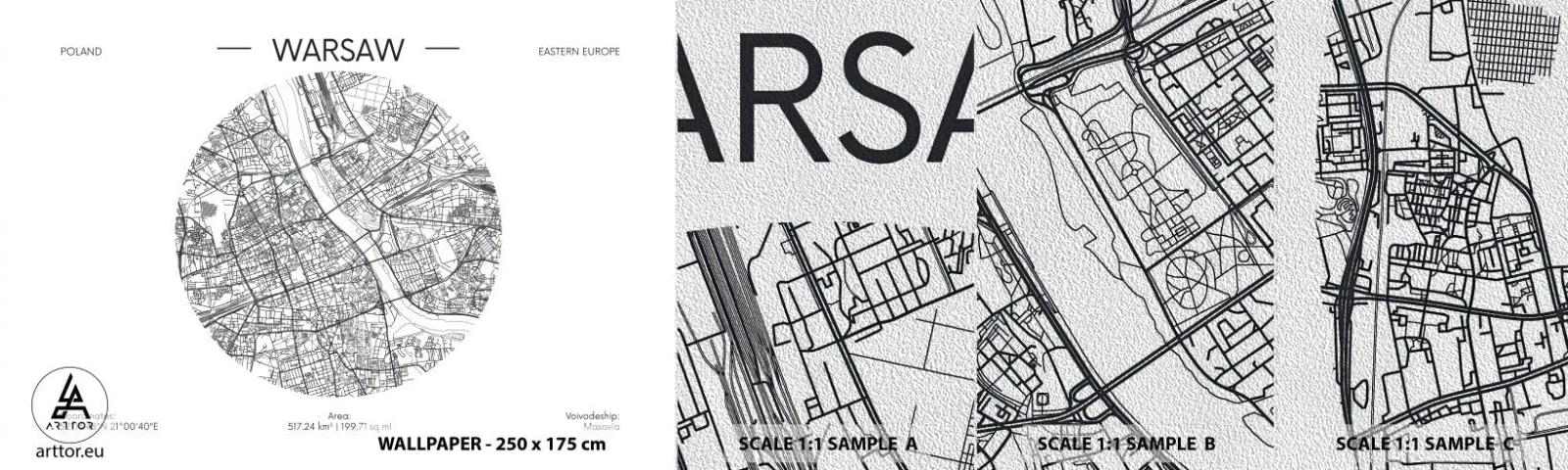 Fotótapéta Minta Premium Sand - Varsó anatómiája - Térkép, Varsó, Lengyelország - 100x30 cm