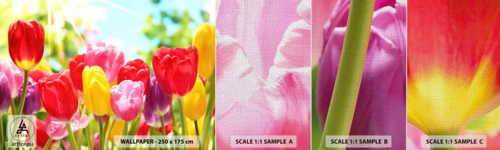 Fotótapéta Minta Premium Canvas - Mi vagyunk, a május színei! - Virágok, Tulipánok, Kert - 100x30 cm