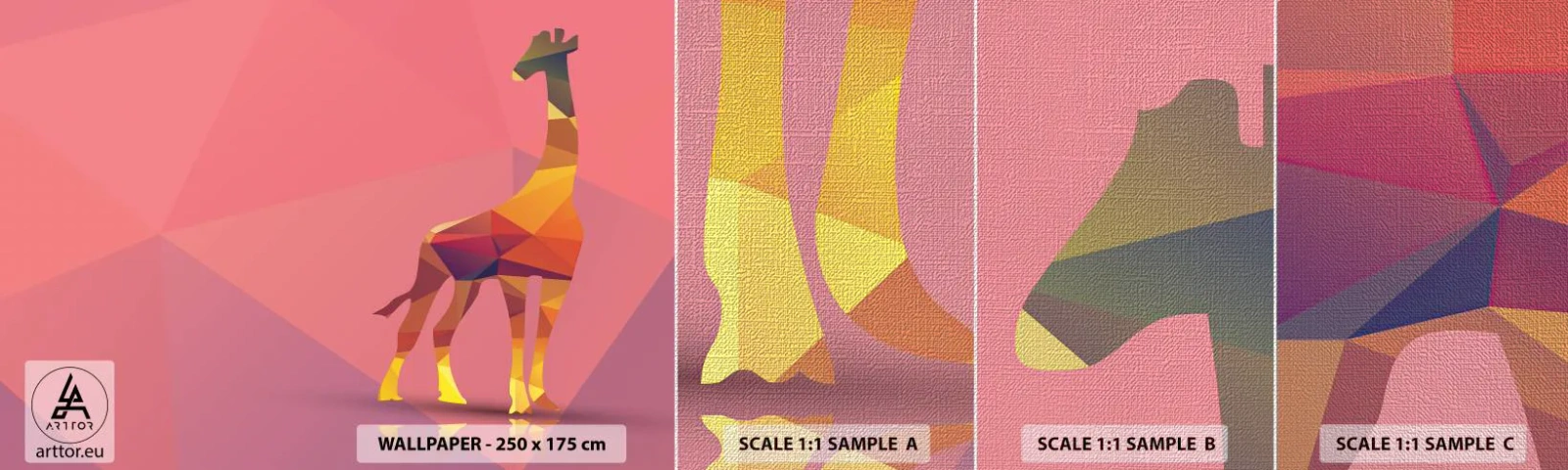 Fotótapéta Minta Premium Canvas - A szavanna színeiben - Állatok, Zsiráf, Geometriai ábra - 100x30 cm