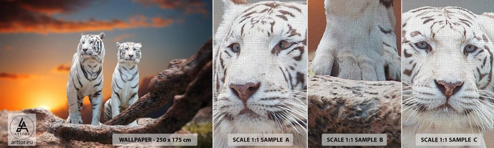 Mielőtt a teljes méretű fotótapéta mellett döntene PREMIUM VÁSZON , javasoljuk, hogy rendeljen anyagmintát a következő méretekben: 100x30 cm A mintának köszönhetően élőben ellenőrizheti az anyag minőségét, láthatja a színvisszaadást, érezheti a felület szerkezetét és felmérheti az anyag vastagságát, ami segít megalapozott döntést hozni a belső terébe legjobb fotótapéta kiválasztásában.