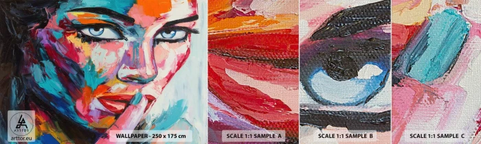 Mielőtt a teljes méretű fotótapéta mellett döntene PREMIUM VÁSZON , javasoljuk, hogy rendeljen anyagmintát a következő méretekben: 100x30 cm A mintának köszönhetően élőben ellenőrizheti az anyag minőségét, láthatja a színvisszaadást, érezheti a felület szerkezetét és felmérheti az anyag vastagságát, ami segít megalapozott döntést hozni a belső terébe legjobb fotótapéta kiválasztásában.