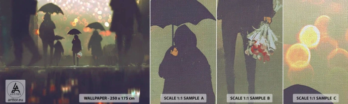 Fotótapéta Minta Premium Canvas - Egy esőcsepp szemszögéből - Sétálj az esőben, Emberek, Grafika - 100x30 cm