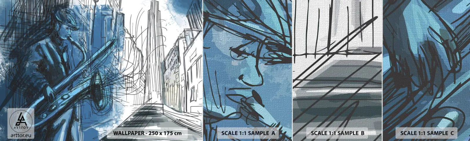 Fotótapéta Minta Premium Canvas - Városi rapszódia - Szaxofon, Dzsessz, Zene - 100x30 cm