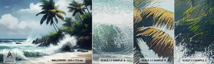 • Strand, Trópusi, Pálmafa, Tájképek, tengeri, természet, tájak, művészet, Irodába, dolgozószobába, étkezőbe, fürdőszobába, előszobába, nappaliba, hálószobába, Fehér, kék, zöld