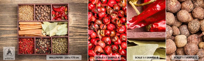 Fotótapéta Minta Öntapadós Deluxe Sticker - Formarend, aromacsokor - Gasztronómia, Fűszerek, Chili - 100x30 cm