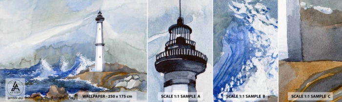 Fotótapéta Minta Öntapadós Deluxe Sticker - A sötétséggel és a viharral szemben - Világítótorony, Tájkép, óceán - 100x30 cm