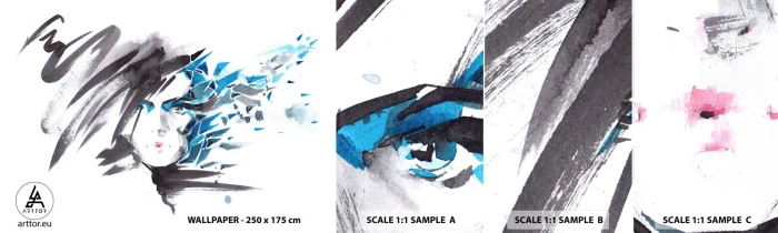 Fotótapéta Minta Öntapadós Deluxe Sticker - Érzéki portré szürkében és kékben - Nő, Női Arc, Absztrakció - 100x30 cm