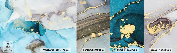 Fotótapéta Minta Öntapadós Deluxe Sticker - Tanulmány a szürke és a türkiz találkozásáról - Absztrakció, Darab, Modern minta - 100x30 cm