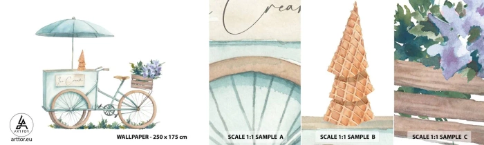 Fotótapéta Minta Öntapadós Deluxe Sticker - A nyár édes emléke - Pasztell, Jégkrém, Kerékpár - 100x30 cm