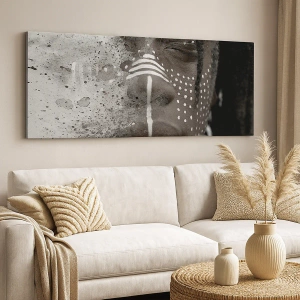 Falikép - Fedezd fel az Ősi Szellemet - Művészi portré egy arcról absztrakt fehér mintákkal