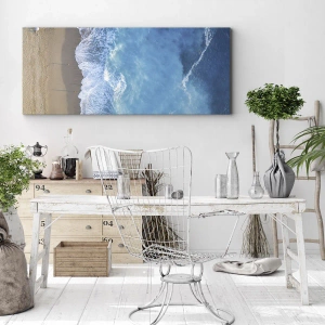 - Ez a festmény madártávlatból ábrázolja a tengerpartot és a tenger hullámait. Faldekoráció, amely harmóniát és pihentető hangulatot visz bármilyen enteriőrbe.
