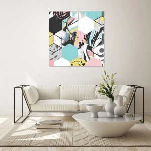 Üveg kép - Hatszögek és kockák hat színben - 40x40 cm