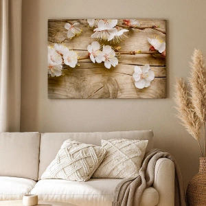 - Az „És elérkezett a tavasz” című festmény finom cseresznyevirágokat ábrázol nyers fa deszkák hátterében. A kompozíció a természetes szépséget a finomsággal ötvözi, harmóniát és frissességet hozva bármilyen enteriőrbe.