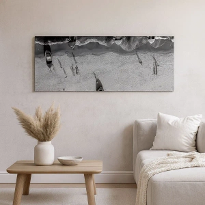 - Ez a festmény egy fekete-fehér légifelvételt ábrázol egy tengerparton fekvő hajóról. Minimalista és elegáns dekoráció, amely harmóniát és nyugalmat visz a belső térbe.