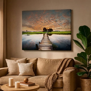 A vászon a keretre van feszítve. Az oldalak és a szélek nyomtatva vannak, a kép folytatását alkotva. A kép készen áll a falra akasztásra. Minden termékhez tartozik egy, a kerethez rögzített akasztó és egy rögzítőkészlet (csavar + dübel).