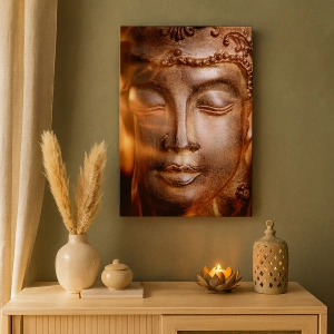 - A festmény egy arany lángokkal körülvett Buddha-szobrot ábrázol. Ideális motívum a keleti hangulat és a spirituális harmónia által ihletett enteriőrökhöz.