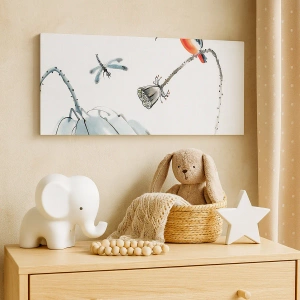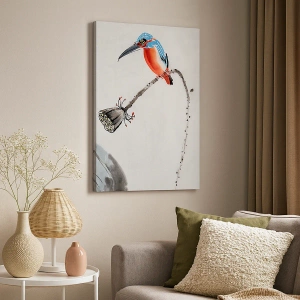 - Ez a festmény egy színes madarat ábrázol növényzet és egy szitakötő hátterében. Finom, pasztell árnyalatú kompozíció, amely tökéletes a harmónia és a természet megteremtésére egy belső térben.