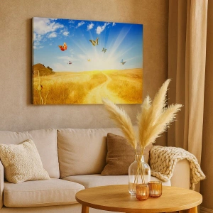 A vászon a keretre van feszítve. Az oldalak és a szélek nyomtatva vannak, a kép folytatását alkotva. A kép készen áll a falra akasztásra. Minden termékhez tartozik egy, a kerethez rögzített akasztó és egy rögzítőkészlet (csavar + dübel).