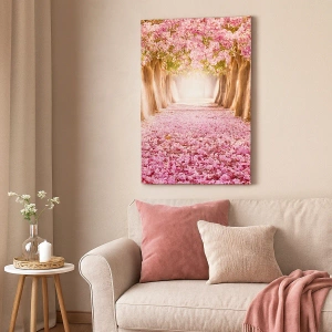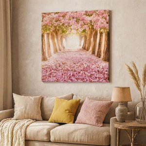 - Egy romantikus sugárút, tele virágzó fákkal pasztell rózsaszín árnyalatokban. A tökéletes falikép, amely békét és bájt visz az enteriőrbe.