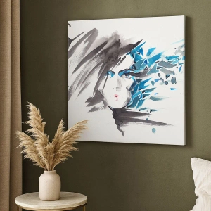 Vászonkép - Érzéki portré szürkében és kékben - 100x40 cm