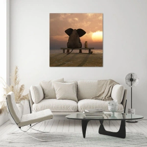 - A festmény egy elefántot és egy kutyát ábrázol, amint egy padon ülve csodálják a víz felett lenyugvó napot. A szimbolikával, barátsággal és békével teli jelenet tökéletes hangulatos belső terekbe.