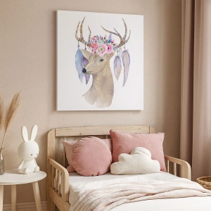 A festmény színvilága, a bézs, rózsaszín és levendula finom árnyalatai tökéletesen illik a bohém, klasszikus vagy romantikus stílusú enteriőrökhöz. A szarvas, mint az erő és a természet szimbóluma, ebben a művészi értelmezésben kivételes finomságot ölt, és bármilyen belsőépítészet fókuszpontjává válik.