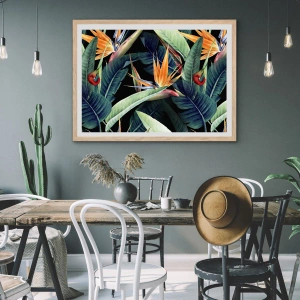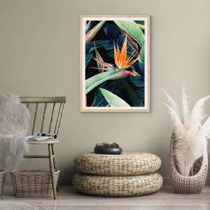 Poszter világos tölgy keretben - A trópusok lángoló virágai - 40x40 cm