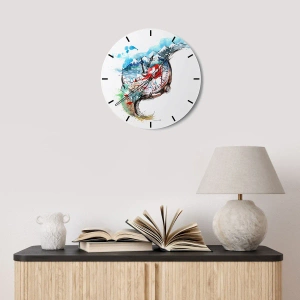 - Svájci tájkép motívummal, hegyekkel és egy zászlóval díszített falióra. Az akvarell stílus és a festői házikók egyedi hangulatot teremtenek. Tökéletes a hegyek szerelmeseinek.