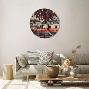 Az óra számlapja dinamikus városi jelenetet ábrázol, fény-árnyék akcentusokkal, amelyek hangsúlyozzák egyedi jellegét. A művészi kidolgozás és a finom részletek harmonikus kompozíciót alkotnak, amely tökéletesen illeszkedik a modern, ipari és minimalista belső terekbe.
