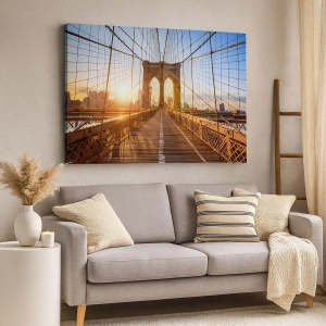 - A festmény egy naplemente fényében fürdő hidat ábrázol, amely egy városi táj felett nyúlik át. Tökéletes kiegészítője bármilyen enteriőrnek, harmóniát és a természet finom báját hozva létre.