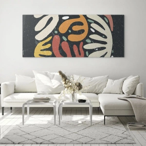 - Dinamikus, színes formák gyűjteménye, melyek organikus formákra emlékeztetnek sötét háttér előtt. Modern kompozíció egy csipetnyi absztrakcióval és mozgással, tökéletes dizájner enteriőrökbe.