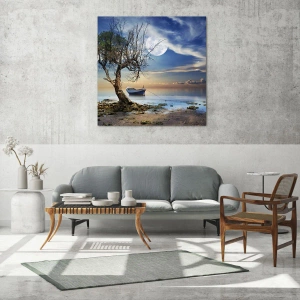 - Egy magányos hajó a parton, egy fa mellett, a holdfény hátterében. Egy békével és varázslattal teli táj, amely tökéletes a nyugalmat hozó enteriőrökbe.
