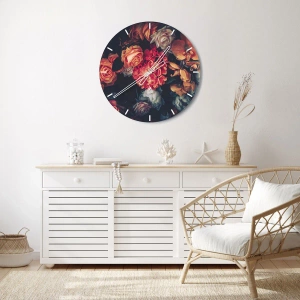 Falióra, Óra - Barokk stílusú virágkompozíció sötét háttér előtt - 30x30cm - Mint a holland mestereknél - Modern fali dekoráció nappalihoz, konyhához és hálószobához ARTTOR