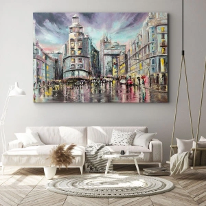 A vászon a keretre van feszítve. Az oldalak és a szélek nyomtatva vannak, a kép folytatását alkotva. A kép készen áll a falra akasztásra. Minden termékhez tartozik egy, a kerethez rögzített akasztó és egy rögzítőkészlet (csavar + dübel).