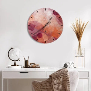 A „Geometrikus átalakulások rózsaszínben” falióra egy egyedi dekoráció, amely ötvözi a művészi absztrakciót a modern dizájnnal. A rózsaszín és narancs árnyalatú geometrikus minták harmóniát, finomságot és egyedi stílust visznek az enteriőrökbe.