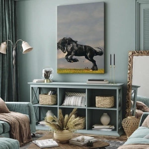 - Ez a festmény egy fekete lovat ábrázol, amint dinamikusan szökell az ég felé. Az erő, a szabadság és az elegancia szimbóluma, amely tökéletes mind a klasszikus, mind a modern enteriőrökbe.