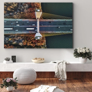 - Ez a 70x50 cm-es vászonkép madártávlatból ábrázol egy folyó felett átívelő hidat és a környező őszi tájat. Tökéletes dekoráció az építészet és a természet szerelmeseinek.