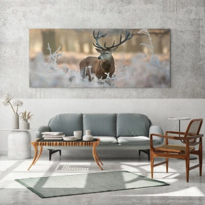 Falikép - Ropogós reggel - Szarvas egy fagyos tisztáson, téli erdő ölelésében