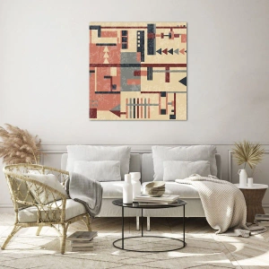 Üveg kép - Absztrakt geometrikus minta bézs és piros árnyalatokban - 70x50cm - A függőleges és vízszintes felületek kombinációja - Modern fali dekoráció nappalihoz és hálószobához ARTTOR