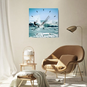 Falióra, Óra - Kitesurfer lovagol egy hullámon egy napsütéses napon a tengerparton - 30x30cm - Ragadtasd el magadat - Modern fali dekoráció nappalihoz, konyhához és hálószobához ARTTOR