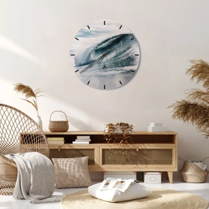 Az óra 4 mm vastag biztonsági üvegből készül. Az óra gyártási technológiája megfelel a PN-EN 12600: 2004 szabvány szerinti 2B2 biztonsági osztálynak, amely garantálja az ütésállóságot. Az üvegen lévő óra felakasztható - az óra hátuljára fém akasztó van rögzítve, és egy habtávolság szabályozza az óra és a fal közötti egyenletes távolságot. Az óra csendes úszó mechanizmussal rendelkezik, amely 1,5 V-os elemmel működik - AA elemmel (az elem nem tartozék).