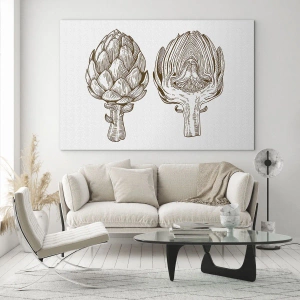Üveg kép - Articsóka botanikai rajza teljes egészében és keresztmetszetben - 70x50cm - Anatómia lecke - Modern fali dekoráció nappalihoz és hálószobához ARTTOR