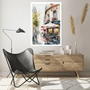 • Kávézó, Párizs, Akvarell, Városok, Art, Irodába, dolgozószobába, étkezőbe, előszobába, nappaliba, hálószobába, Barna, fekete, rózsaszín, szürke, zöld, Függőleges