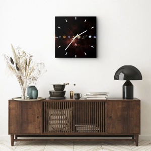 - Ez az óra, amely a Naprendszer bolygóit egy fekete galaxis hátterében jeleníti meg, oktató jellegű és feltűnő dekoráció. Tökéletes modern belső terekbe, ifjúsági terekbe és a csillagászat szerelmeseinek.