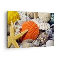 Vászonkép - Kagylók és tengeri csillagok tengeri kompozícióban - 70x50cm - Óceán kincsei - Modern fali dekoráció nappalihoz és hálószobához ARTTOR