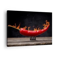Vászonkép - Lángoló pirospaprika villán - 70x50cm - Tüzes előétel - Modern fali dekoráció nappalihoz és hálószobához ARTTOR