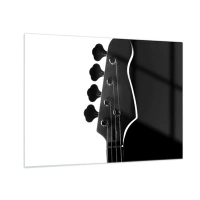 Üveg kép - Fekete-fehér basszusgitár fejrész árnyékkal - 70x50cm - Sziklacsend - Modern fali dekoráció nappalihoz és hálószobához ARTTOR